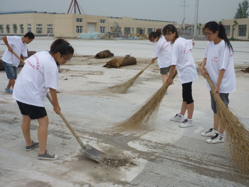 安排好住宿后,实践队员们便开始了下午活动的准备工作。经过中午短暂的修整,队员们在下午开始了第一天的社会实践活动,任务是帮助工作人员清扫市场大院里的杂物。为了整齐划一,下午活动时所有队员身着志愿者队服,手拿由工作人员配发的清扫工具充分发挥团队的协作精神,在相互默契的配合下,队员们用短暂的三个小时将场院打扫的干干净净,并且得到了管理人员的好评。
